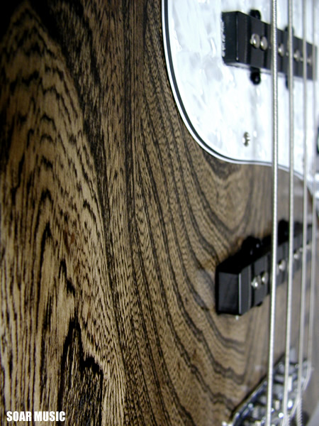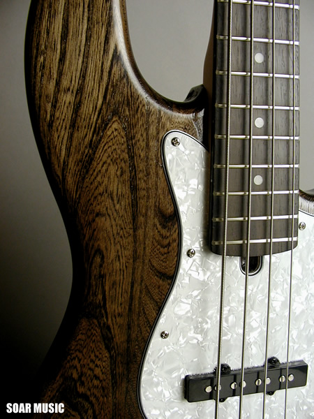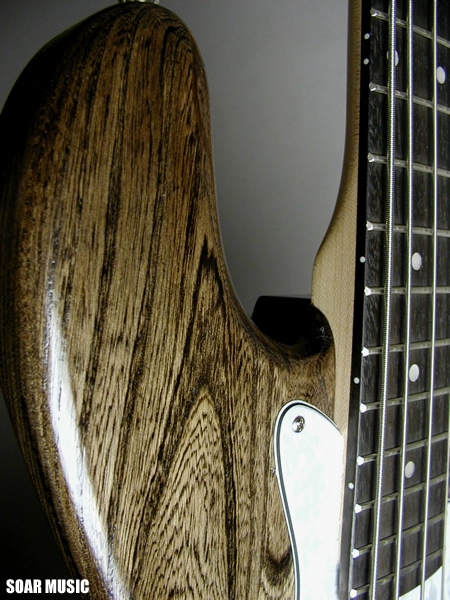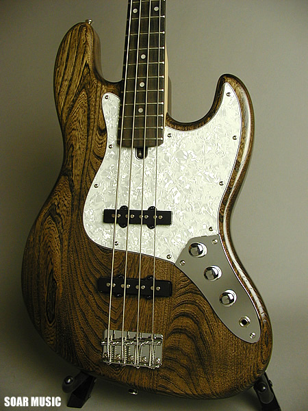 シンプルで扱い易いジャズベースタイプのボディ形状を採用し、ボディに使用されたアッシュ材に目止め塗装を施して、高級感溢れるオイルフィニッシュ風に仕上げました。