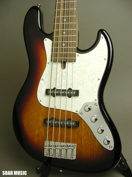 | プリアンプ内蔵(TREBLE/BASS BOOST)の本格5弦ベースをこの価格で! お求め安い価格と Bacchus ブランドを背負う高品位な作りで、初めて5弦に挑戦される方はもちろん、中級クラスのプレイヤーにも十分お勧めできます! 王道の3トーン・サンバースト塗装にパールピックアップを装備。上品で味のある仕上がりです! |