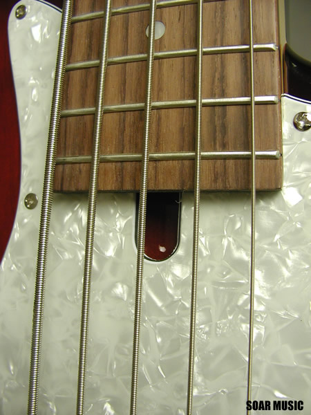 | プリアンプ内蔵(TREBLE/BASS BOOST)の本格5弦ベースをこの価格で! お求め安い価格と Bacchus ブランドを背負う高品位な作りで、初めて5弦に挑戦される方はもちろん、中級クラスのプレイヤーにも十分お勧めできます!ルックスも、ホワイトパールのピックガードや落ち着いた深い赤色のボディが非常にクール。うっすらと木目が浮かぶシースルー塗装が上品な雰囲気を一層引き立てます。 |