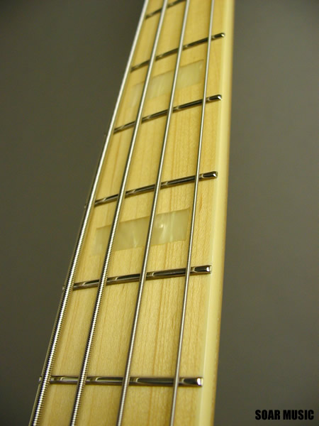 アッシュボディ、バインディングが施されたメイプル指板、ブロックインレイのポジションマークなど70年代のジャズベースの特徴、スタイルを継承しています。 また、リアピックアップをブリッジ側に寄せて搭載されており、タイトでメリハリのあるサウンドを出力します。 アッシュボディとメイプル指板の組み合わせによりアタックレスポンスが良く、 BJB-60'sモデルと比べ高音域に特徴があり、輪郭のはっきりしたサウンドが魅力です。 |