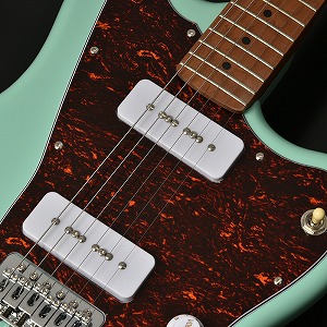 本機用に開発されたP-90タイプのピックアップ「Bacchus/BP-90」を2基搭載し、シングルコイルピックアップならではの歯切れの良さと、太くパワーのあるサウンドを併せもちます。ピックアップ裏面にはブラスプレートが付いており、ノイズが軽減されるような処理が施されております。