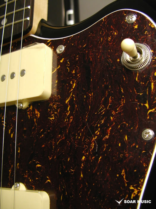 ストラト等に搭載されている一般的なシングルサイズが大きめのピックアップを搭載しており、ジャズマスターならではの張りのある太いサウンドが特徴です。また、ボディにマンゴー材を使用する事で、中低音域がずっしりとしたサウンドに一役買っています。リアポジションでは張りと独特の高音域の鳴りを残しつつも、重心の落ち着いたサウンド、フロントポジションではファットで甘くメロウなサウンドを出力します。