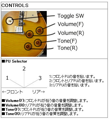 CONTROLS:2Vol,2Tone,3Way Toggle SW