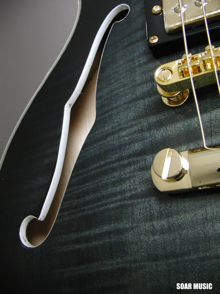 レスポールタイプのギターですが、ホロウ構造の為、レスポールタイプの中ではボディーはかなり軽量で扱いやすくなっています。