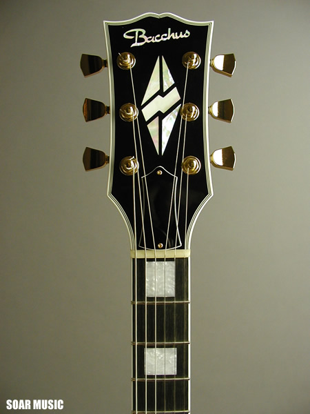 Bacchusクラシックシリーズのレスポールカスタムタイプ。長野の国内工場で製作され、価格帯を越えた高い完成度を誇ります。伝統的かつ王道のスタイルで、存在感抜群。材の選定、加工や組上げは勿論、CTSポットやオイルコンデンサー、スイッチクラフト製ジャック等の採用など細部パーツも充実。材は良質のマホガニーをボディとネックに据え、ローズウッド指板を採用。2基のハムバッカータイプのBacchusピックアップでコシのある骨太のサウンドを轟かせます。