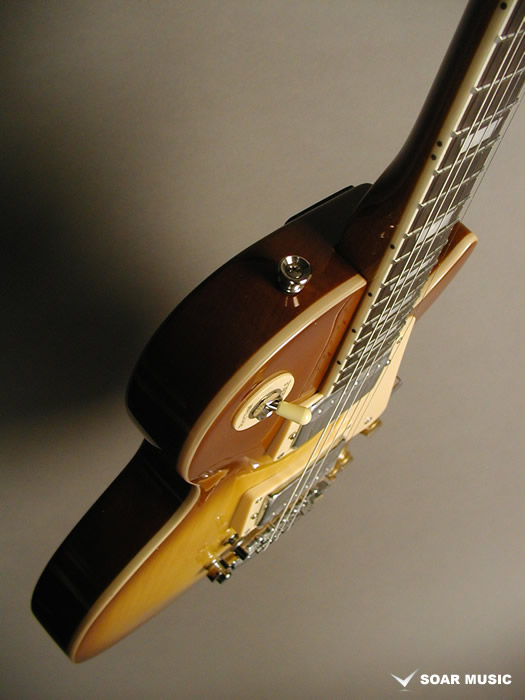 ボディトップにメイプル材、ボディバックにマホガニー材を使用し、レスポールらしい美しいアーチトップ、ボディ外周のバインディングなど、伝統的なスタイルがそのままダウンサイジングされています。