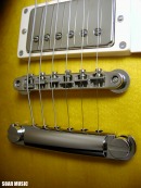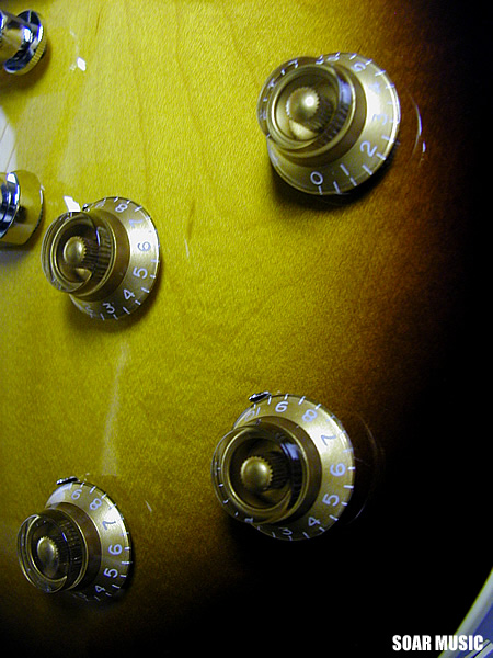 メイプルトップ、マホガニーバックの王道な仕様ながらも、選定された上質の材を使用し、熟練のクラフトマンにより微妙な材質の差を見極めながらハンドメイドで加工・組み込みを行い、楽器としての鳴り、ボディバランスなどを考慮して製作されています。