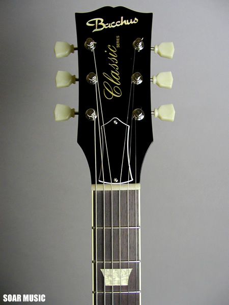 Bacchusクラシックシリーズのレスポールタイプ。長野の国内工場で製作され、価格帯を越えた高い完成度を誇ります。伝統的かつ王道のスタイルで、存在感抜群。材の選定、加工や組上げは勿論、CTSポットやオイルコンデンサー、スイッチクラフト製ジャック等の採用など細部パーツも充実。フィニッシュはラッカーで美しく仕上がっています。材は良質のマホガニーをボディとネックに据え、ローズウッド指板を採用。2基のハムバッカータイプのBacchusピックアップでコシのある骨太のサウンドを轟かせます。