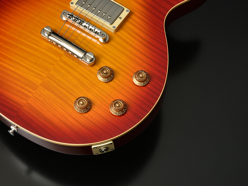 ボディトップにはフレイムメイプルを採用。バーストカラーとマッチした華やかな外観に仕上がっています。ボディバックにはマホガニー、指板にはローズウッドを採用した王道スペックで安心のサウンドをお楽しみ頂けます。