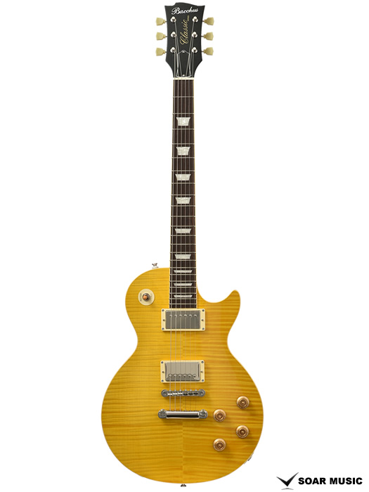 ボディトップにはフレイムメイプルを採用。バーストカラーとマッチした華やかな外観に仕上がっています。ボディバックにはマホガニー、指板にはローズウッドを採用した王道スペックで安心のサウンドをお楽しみ頂けます。