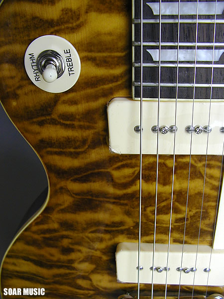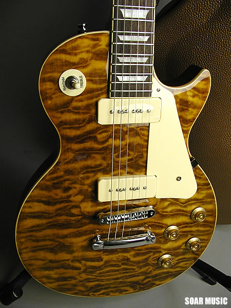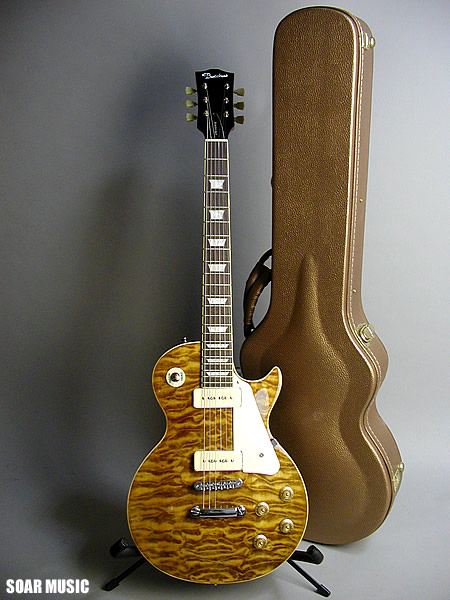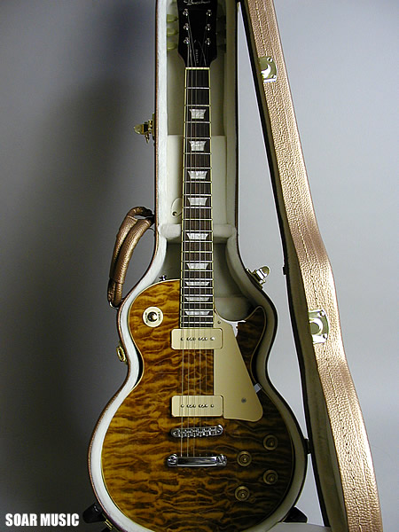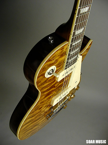 数量限定モデルを極少数で再入荷!斬新なトランスアンバーナチュラルカラーに塗装したキルトメイプルをボディトップに採用。塗装の性質上、キルトらしい自然な木目の映りを殺していますが、それを補って余りあるインパクト重視の大胆なルックスが醍醐味です。ギター本体をより引き立てるゴールド×ホワイトファーのハードケースも付属。極少数、在庫限りのスポット生産のため、お早目のご検討をお奨め致します。