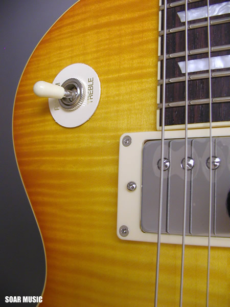 | BODY TOP:MAPLE with LAMINATED FLAME MAPLE BODY BACK:MAHOGANY NECK:AFRICAN MAHOGANY 1P FINGER BOARD:INDIAN ROSEWOOD SCALE:314mm(12F) WIDTH AT NUT:43mm RADIUS:310R MACHINE HEADS:ROTOMATIC TYPE NUT:BONE CONTROLS:2Vol,2Tone,Toggle SW PICK UPS:ACCHUS LPH1×2 FINISH:URETHANE 下記当店調べ THICKNESS AT 1F:21.5mm THICKNESS AT 12F:24.5mm Box Wrench:8mm |
