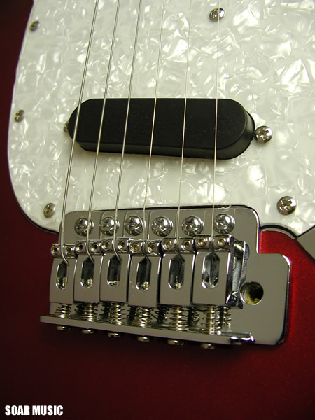 ブリッジにはシンクロナイズドトレモロが搭載されており、セッティングを施す事でアームによる表現豊かなビブラートやトリッキーなアーム奏法も可能です。