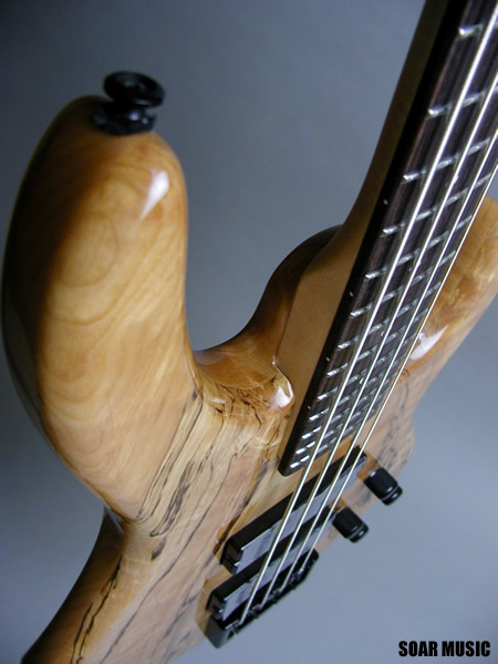| 独特の美しい木目を持つスポルテッド・メイプルをボディトップ材に採用した4弦ベース