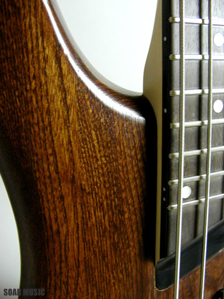 ボディトップバック共にアーチ加工を施し、24フレット仕様ながらも小ぶりで扱い易いボディ形状です。
