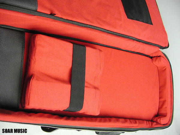 4. 内装には高級感のあるレッドのフェルト生地を採用し、ブリッジ、ペグの当たる部分にはナイロン生地でしっかりと保護。