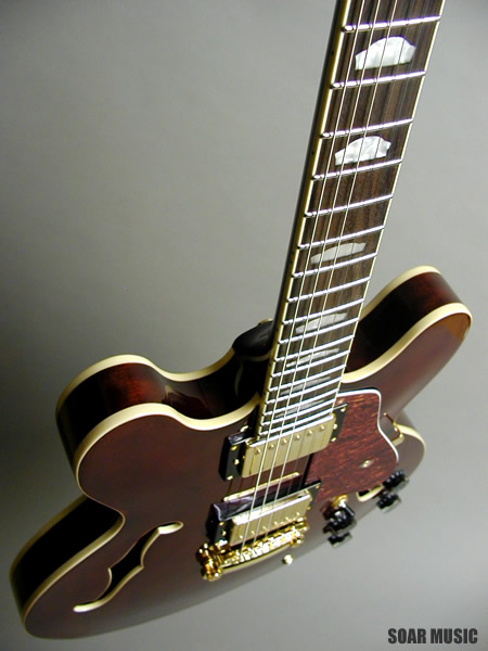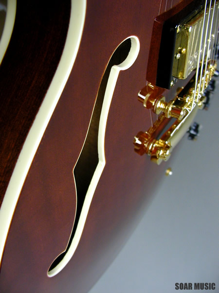 美しい外観を持つオールフレイムメイプルボディ仕様の16インチ、スタンダードセミアコースティックBSA-1200のオールマホガニーボディモデル。中低域のレスポンスに優れた独特の音色はブルージイーなプレイに特にマッチします。素材の風合いを活かした落ち着いた外観も魅力です。リードプレイ、コードカッティングを問わず、使いやすい鳴りに仕上げられ、様々なジャンルにおいてセミアコの魅力を十分に発揮してくれます。