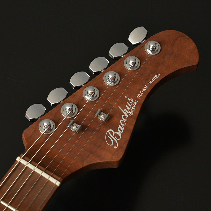 ローステッドメイプルをネックと指板に採用し、1ランク上のコンポーネントを搭載した実戦仕様の1本に仕上がりました。Bacchus Global seriesの高いコストパフォーマンスを実感出来る、細部までこだわりが込められたスペックです。
