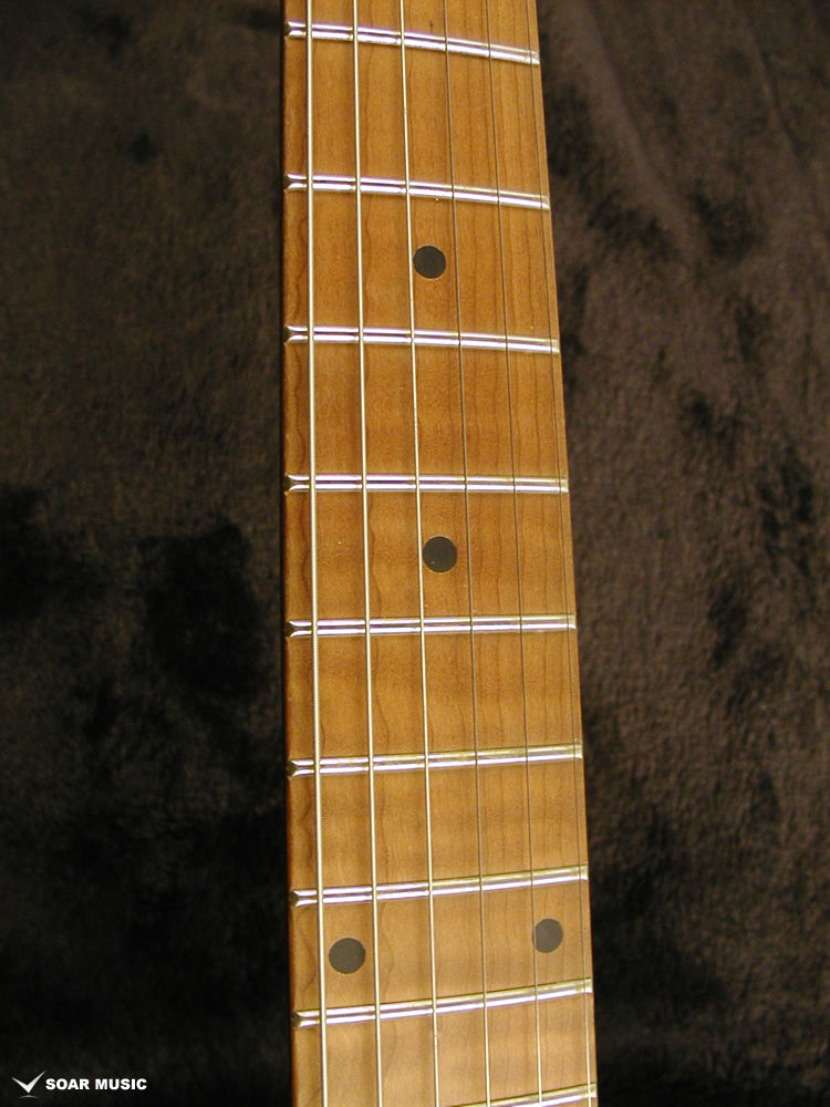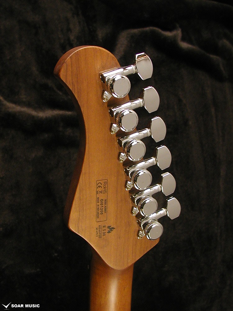 ローステッドメイプルとはメイプルを高温で加熱処理して材の中の水分や油分を揮発させることにより剛性を高めた材。ネックに使用されるとその効果は安定性だけでなくサウンドにも及び、豊かな生鳴りと経年変化したビンテージのようなこなれたトーンを生み出します。高級機種で使われることの多いこの本格派仕様をリーズナブルな価格帯に落とし込んだBacchusの新しい製品ラインナップです。