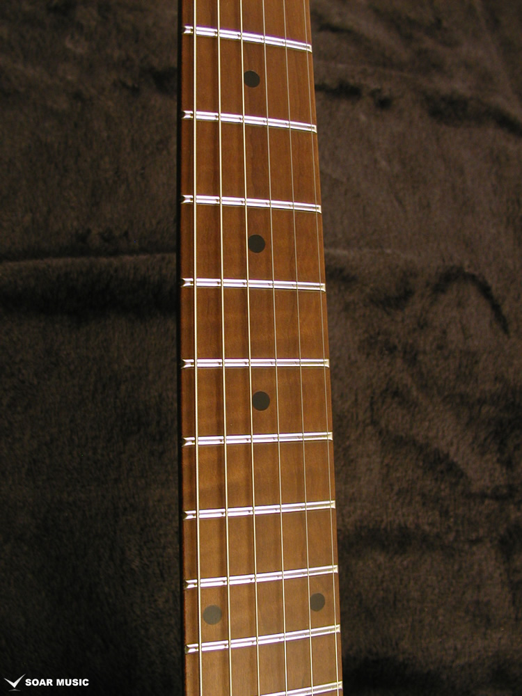 ローステッドメイプルとはメイプルを高温で加熱処理して材の中の水分や油分を揮発させることにより剛性を高めた材。ネックに使用されるとその効果は安定性だけでなくサウンドにも及び、豊かな生鳴りと経年変化したビンテージのようなこなれたトーンを生み出します。高級機種で使われることの多いこの本格派仕様をリーズナブルな価格帯に落とし込んだBacchusの新しい製品ラインナップです。