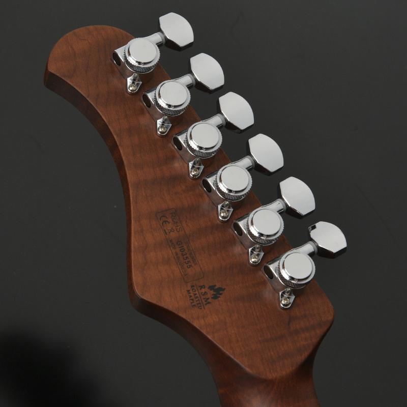 ローステッドメイプルをネックと指板に採用し、1ランク上のコンポーネントを搭載した実戦仕様の1本に仕上がりました。Bacchus Global seriesの高いコストパフォーマンスを実感出来る、細部までこだわりが込められたスペックです。 ※ローステッドメイプルの木目には個体差があります