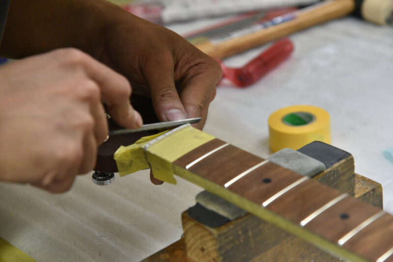 ナット溝の微調整や必要があればフレットのすり合わせなど1本1本を丁寧に再調整。 即戦力として現場で使用できるようにセットアップしました。