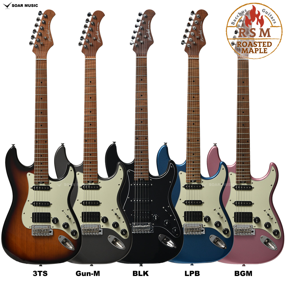 ローステッドメイプルとはメイプルを高温で加熱処理して材の中の水分や油分を揮発させることにより剛性を高めた材。ネックに使用されるとその効果は安定性だけでなくサウンドにも及び、豊かな生鳴りと経年変化したビンテージのようなこなれたトーンを生み出します。高級機種で使われることの多いこの本格派仕様をリーズナブルな価格帯に落とし込んだBacchusの新しい製品ラインナップです。