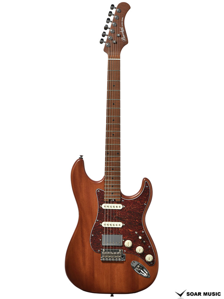 ローステッドメイプルとはメイプルを高温で加熱処理して材の中の水分や油分を揮発させることにより剛性を高めた材。ネックに使用されるとその効果は安定性だけでなくサウンドにも及び、豊かな生鳴りと経年変化したビンテージのようなこなれたトーンを生み出します。高級機種で使われることの多いこの本格派仕様をリーズナブルな価格帯に落とし込んだBacchusの新しい製品ラインナップです。