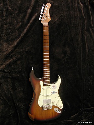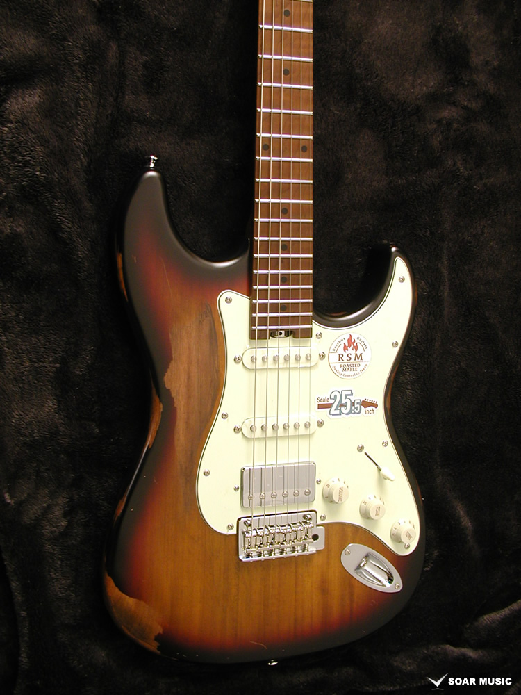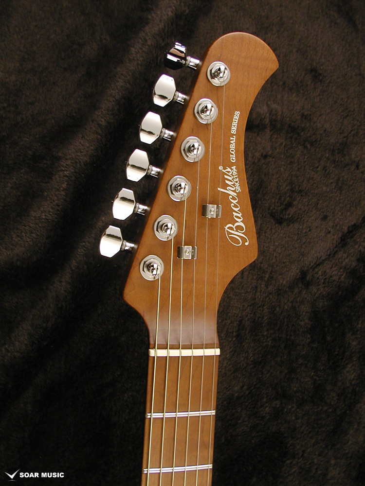 ローステッドメイプルとはメイプルを高温で加熱処理して材の中の水分や油分を揮発させることにより木材を経年変化した状態に人工的に近づけた材のことです。経年劣化が進んだ材は歪みやねじれが生じにくくなります。ネックに使用されるとその効果は安定性だけでなくサウンドにも及び、豊かな生鳴りと経年変化したビンテージのようなこなれたトーンを生み出します。一般的に高級機種などで用いられる材ですが、手に取りやすい価格帯に落とし込むことに成功しました。