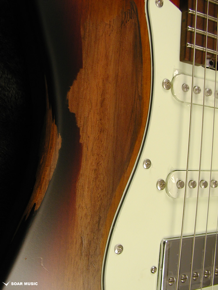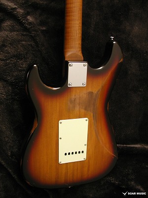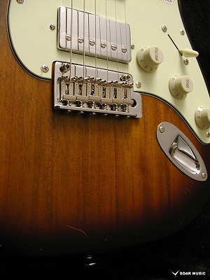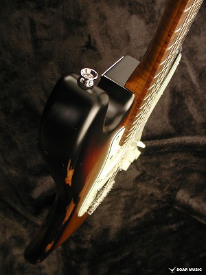 一本一本手作業で行われるボディのエイジド加工により、自然な経年変化を再現しています。一般的なグロスフィニッシュに代わりマットな風合いに仕上げることで、長年引き込んだような風格をその手に感じさせます。