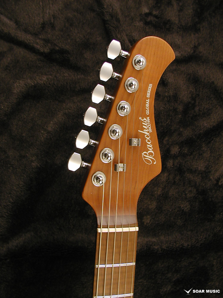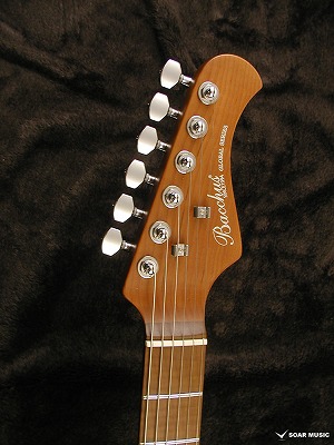 ローステッドメイプルとはメイプルを高温で加熱処理して材の中の水分や油分を揮発させることにより木材を経年変化した状態に人工的に近づけた材のことです。経年劣化が進んだ材は歪みやねじれが生じにくくなります。ネックに使用されるとその効果は安定性だけでなくサウンドにも及び、豊かな生鳴りと経年変化したビンテージのようなこなれたトーンを生み出します。一般的に高級機種などで用いられる材ですが、手に取りやすい価格帯に落とし込むことに成功しました。