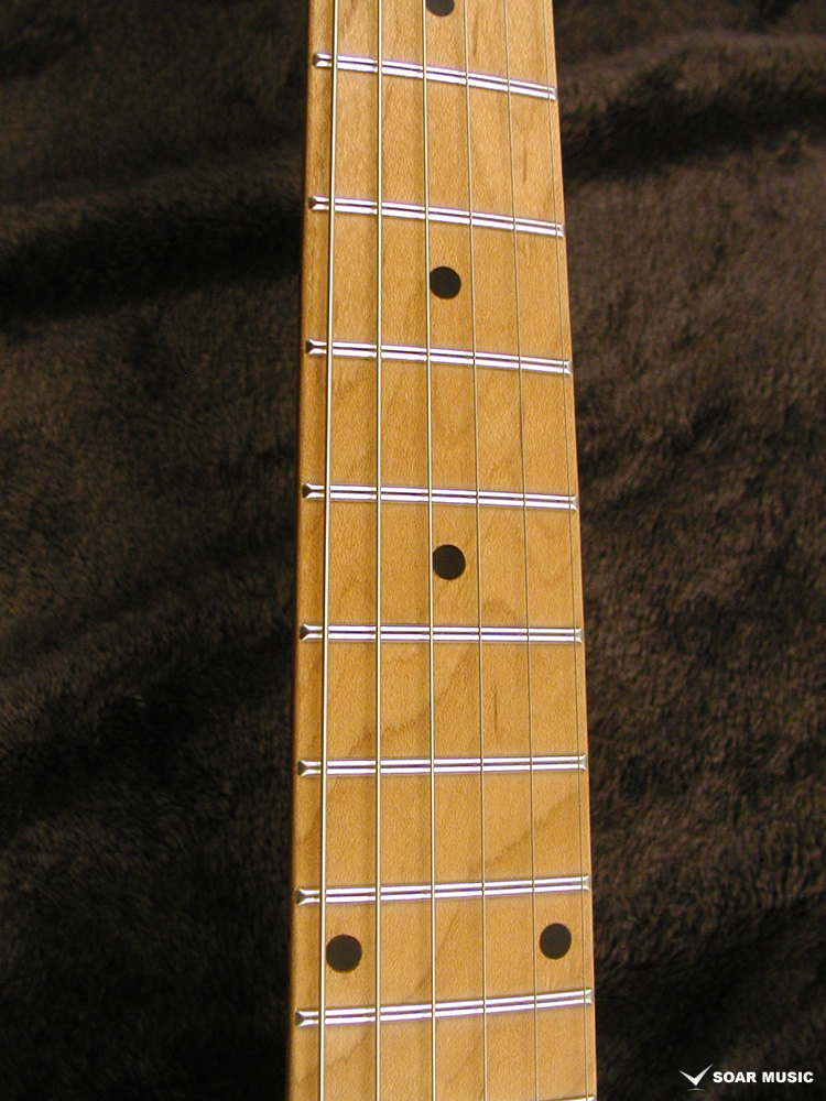 所謂「ロングスケール(25 1/2インチ)」と「ミディアムスケール(24 3/4インチ)」の中間である25インチスケールを採用。ボディ形状とボルトオン構造から想像されるよりも若干緩めのテンション感が、独特な「ルーズ感」を生み出します。ロングスケールのギターだとテンション感がきつくチョーキングなどもし辛いと感じるプレーヤーにもおすすめです。