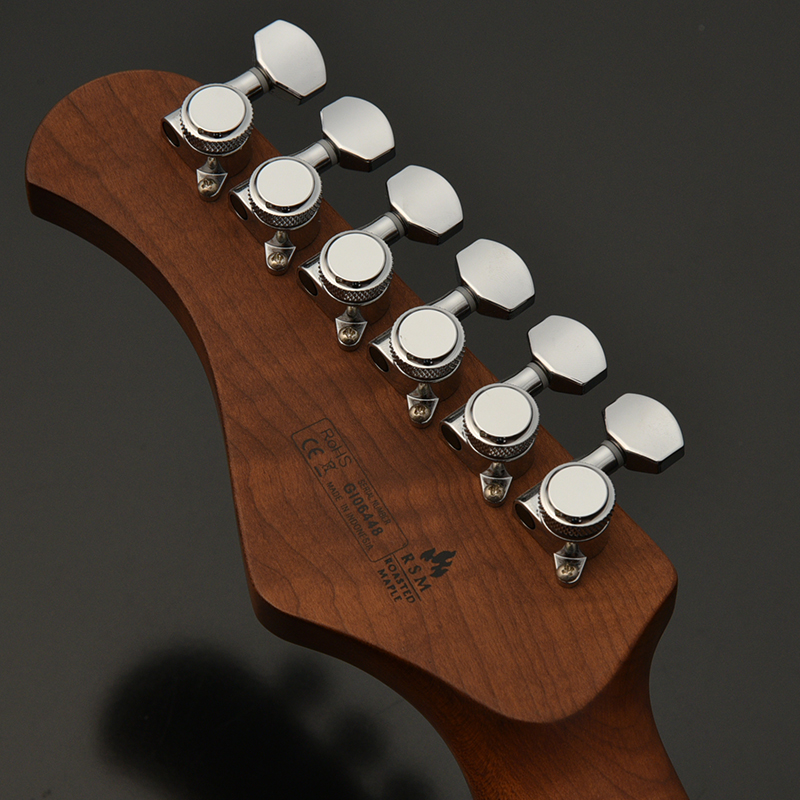 ローストする工程上でゆがみが生じてしまうような木材はその時点で淘汰されるため、ネックとして搭載されている個体は非常にゆがみやねじれに強く、比較的手に取りやすい価格帯ながら長い間ご愛用できる仕様となっております。