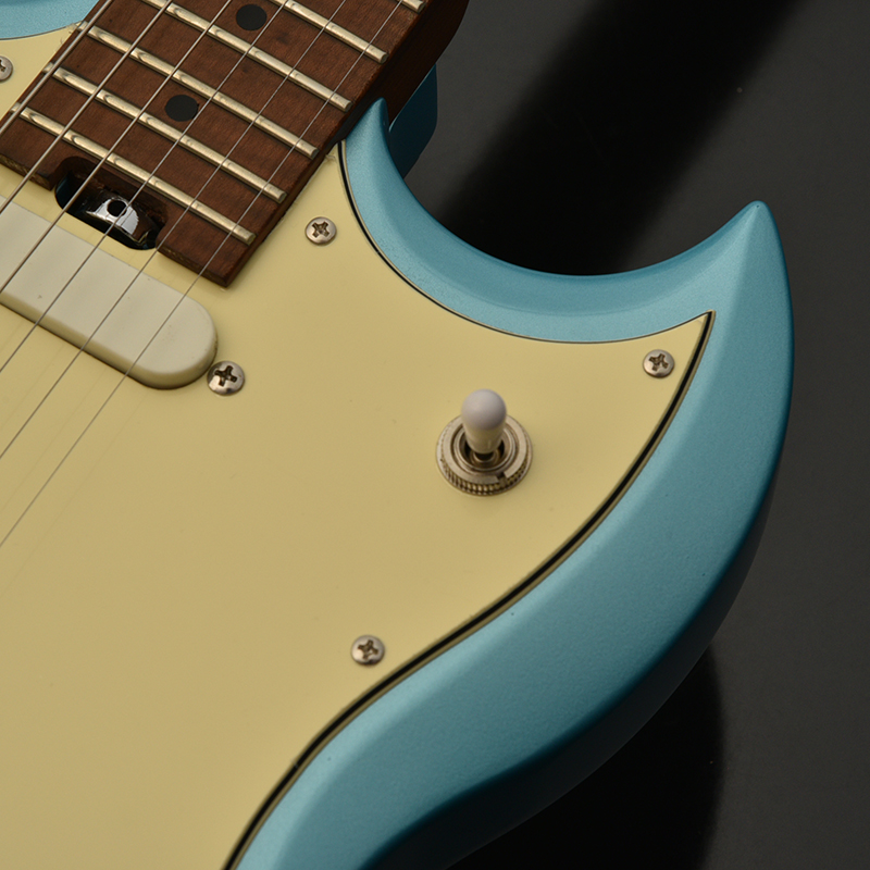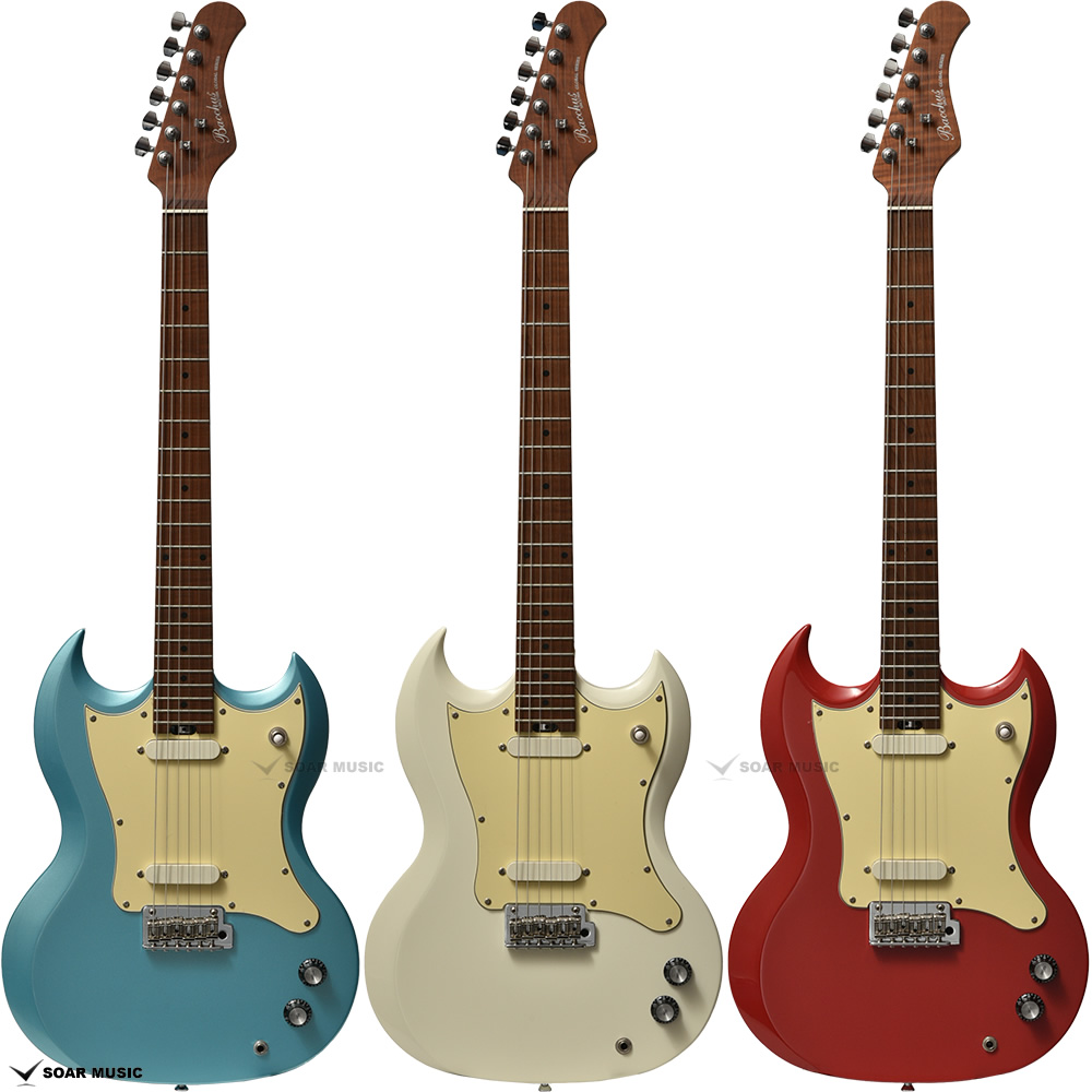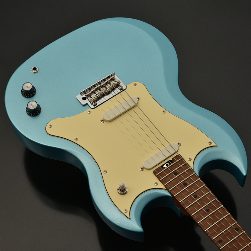 2つのホーンが特徴的なボディシェイプに、2シングルコイルピックアップ、2点支持トレモロ、ローステッドメイプルネックといった仕様を掛け合わせた「有りそうでなかった」モデル。 手に取りたくなるようなポップなルックスと実力を兼ね備えたBacchus Global Seriesの新製品!