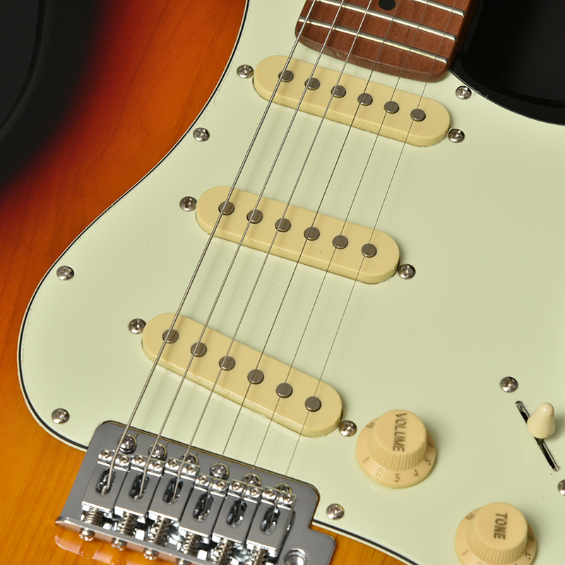 ローステッドメイプルを採用したRSMシリーズ第1弾として発表された『BST-2-RSM/M』はSSHレイアウトのピックアップを搭載しておりました。 今回、多くのユーザー様からのご要望にお答えし、伝統的なSTモデルのようなSSS配列のピックアップレイアウト、5wayセレクタースイッチを搭載したモデルを開発致しました。 これにより、枯れたようなハーフトーンやシャープなシングルコイルトーンなど、バラエティに富んだサウンドをお楽しみ頂けます。