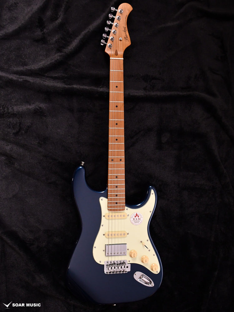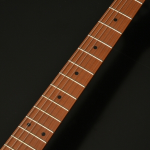 ネックと指板にローステッドメイプルを使用したSSHレイアウトのモデル。 ピックガードやノブにミントカラーのパーツを採用し、オールドギターの風格を漂わせるルックスに仕上げました。 SSHピックアップレイアウトで粒立ちの整ったクリーントーンから、パワーあるオーバードライブサウンドまでジャンルを問わず幅広く音作りをすることができます。更にコイルタップスイッチを搭載し、リアハムはシングルピックアップの様なきらびやかなサウンドを出力します。