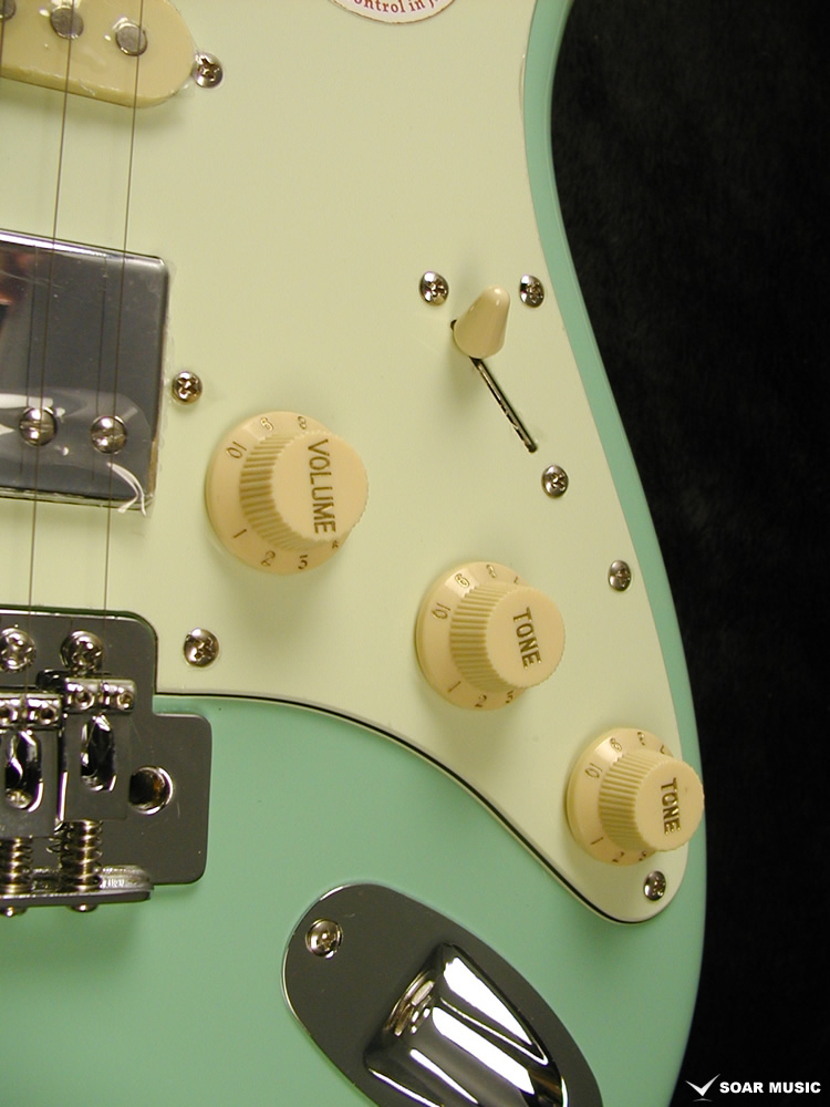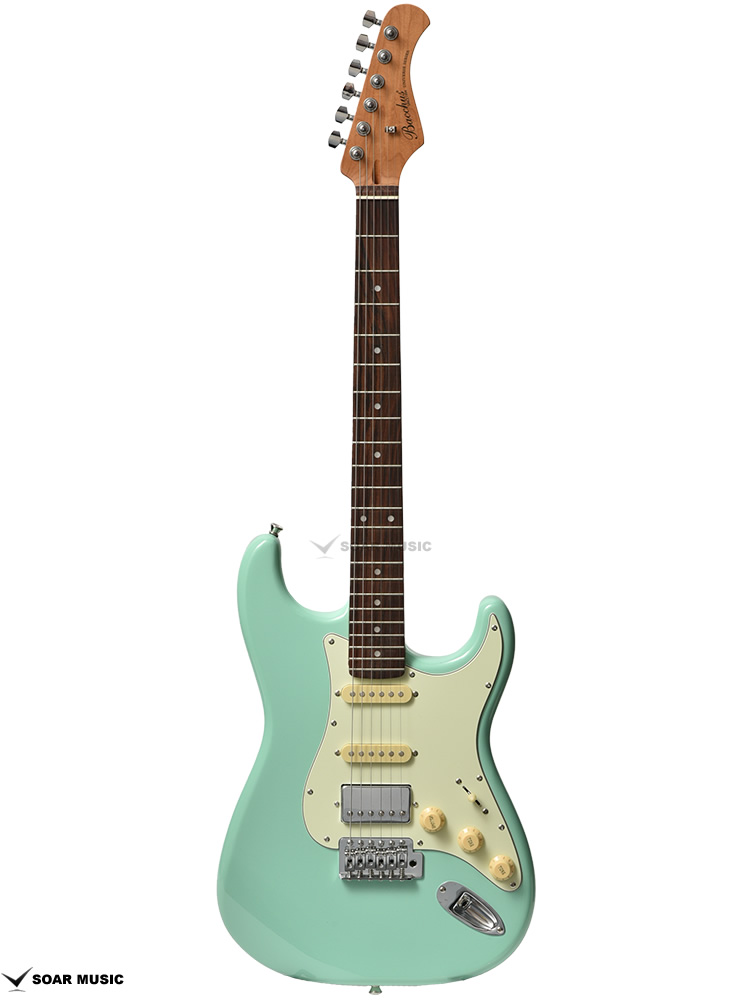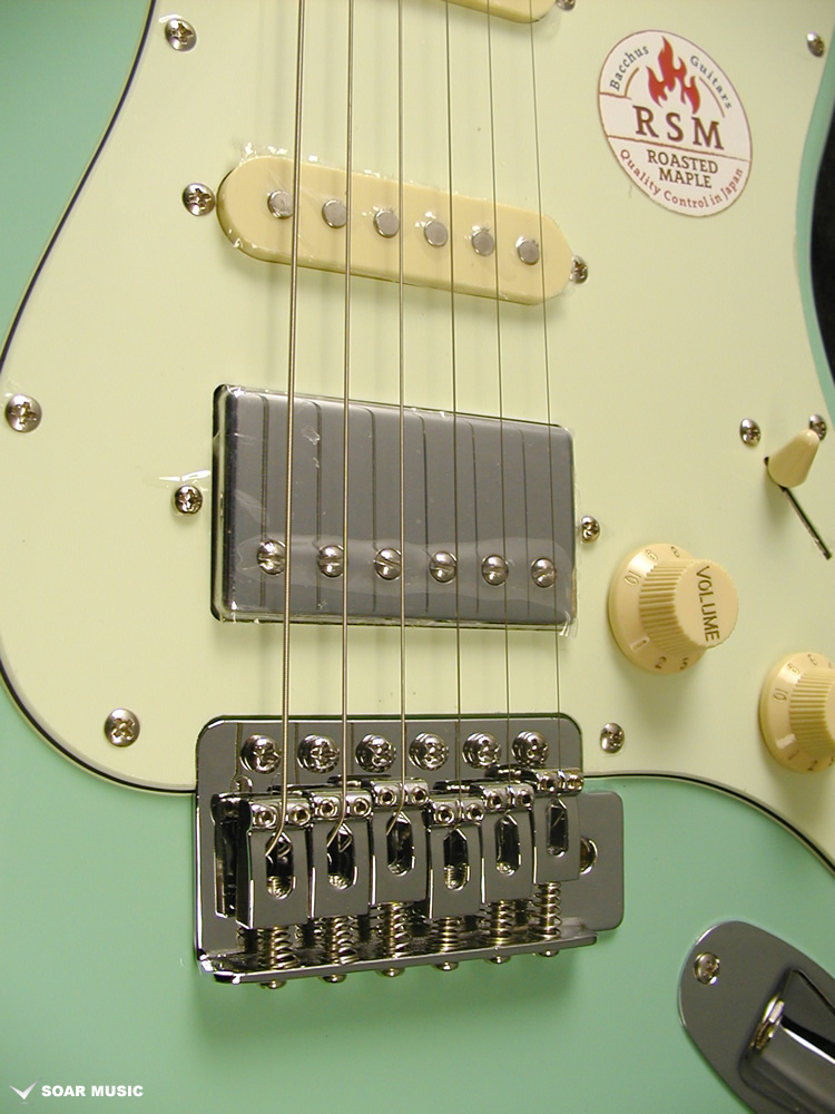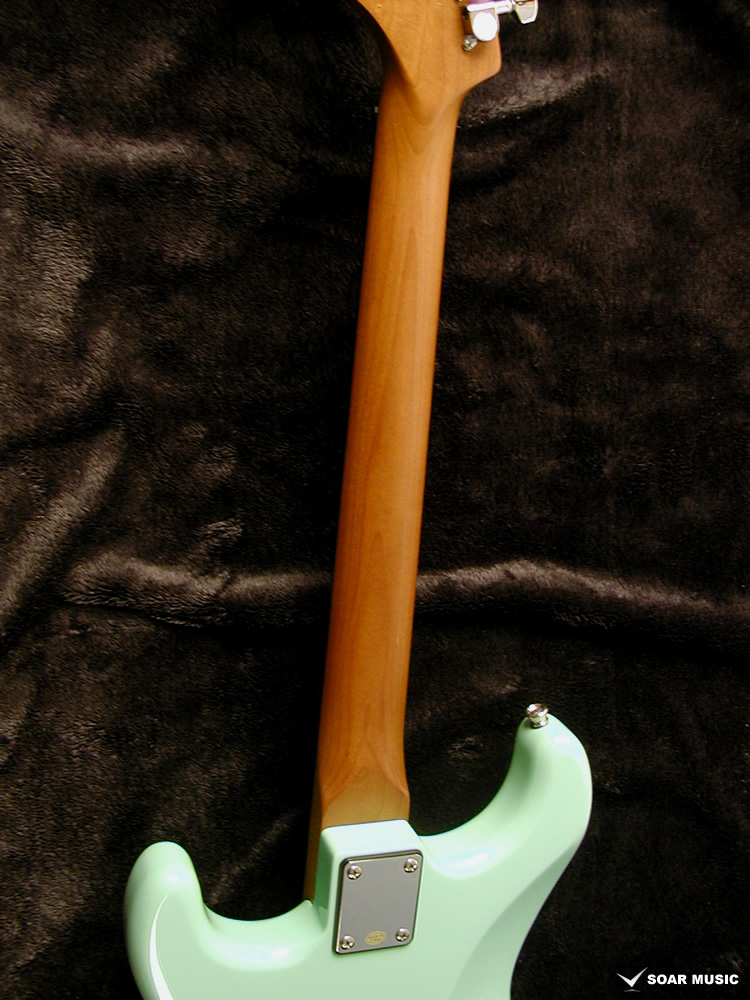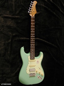 ネックにローステッドメイプルを使用したSSHレイアウトのモデル。 ピックガードやノブにミントカラーのパーツを採用し、オールドギターの風格を漂わせるルックスに仕上げました。 SSHピックアップレイアウトで粒立ちの整ったクリーントーンから、パワーあるオーバードライブサウンドまでジャンルを問わず幅広く音作りをすることができます。更にコイルタップスイッチを搭載し、リアハムはシングルピックアップの様なきらびやかなサウンドを出力します。