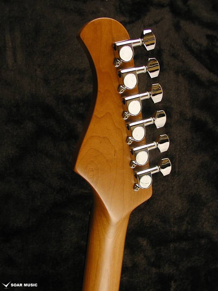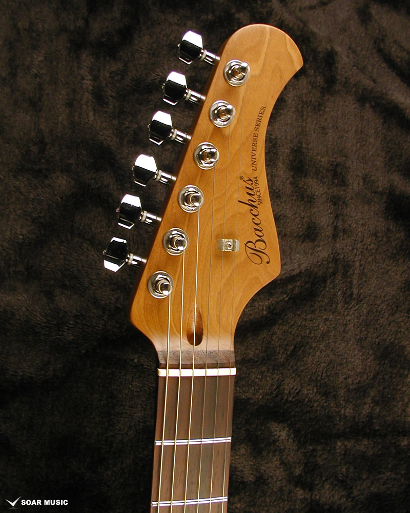 ローステッドメイプルとはメイプルを高温で加熱処理して材の中の水分や油分を揮発させることにより剛性を高めた材。ネックに使用されるとその効果は安定性だけでなくサウンドにも及び、豊かな生鳴りと経年変化したビンテージのようなこなれたトーンを生み出します。高級機種で使われることの多いこの本格派仕様をリーズナブルな価格帯に落とし込んだBacchusの新しい製品ラインナップです。
