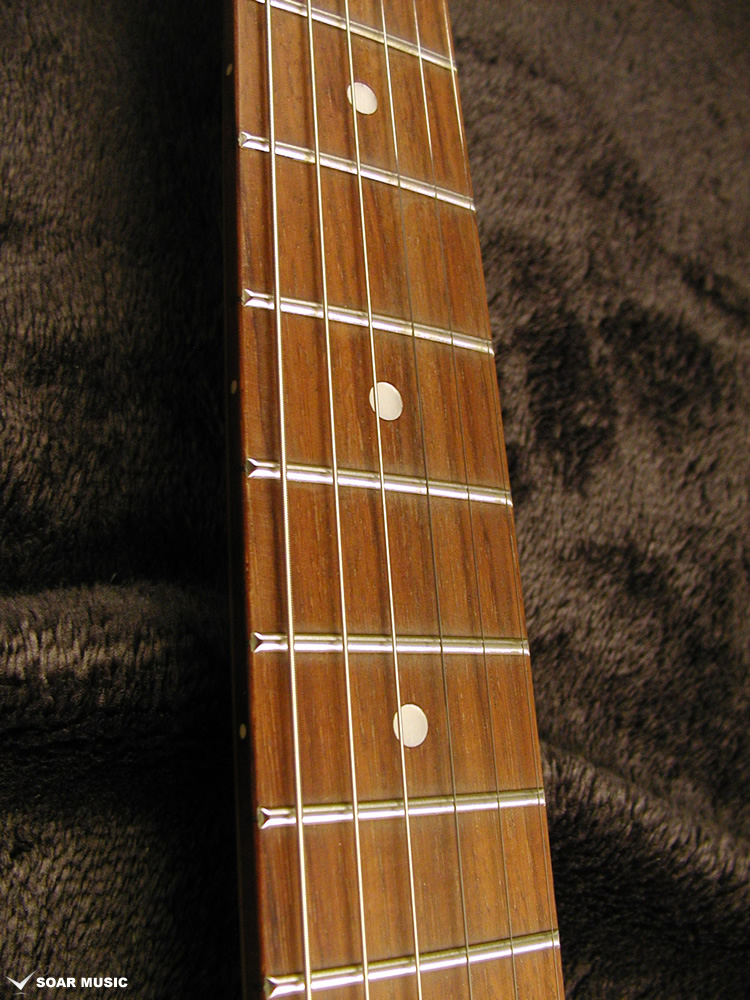 指板にはローズウッドを採用。 ローステッドメイプル指板に比べ、粘り気のあるローミッドが特徴的なサウンドに仕上がりました。
