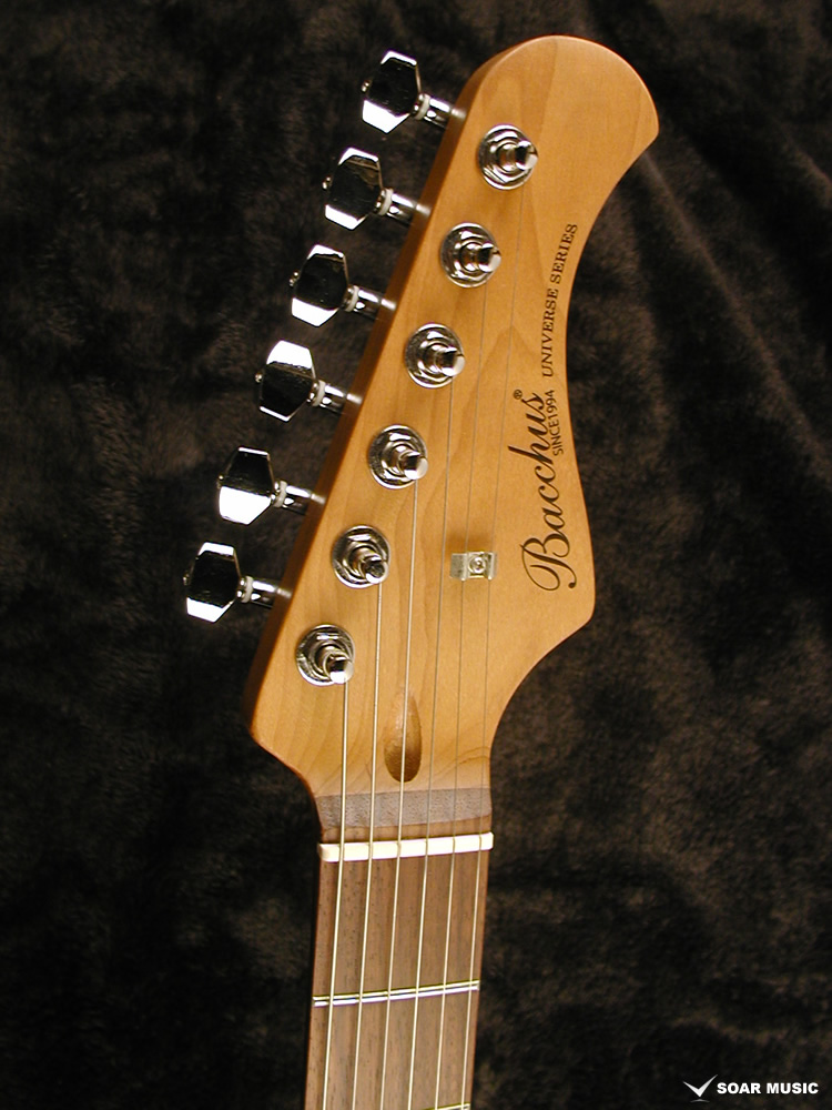 ローステッドメイプルとはメイプルを高温で加熱処理して材の中の水分や油分を揮発させることにより剛性を高めた材。ネックに使用されるとその効果は安定性だけでなくサウンドにも及び、豊かな生鳴りと経年変化したビンテージのようなこなれたトーンを生み出します。高級機種で使われることの多いこの本格派仕様をリーズナブルな価格帯に落とし込んだBacchusの新しい製品ラインナップです。