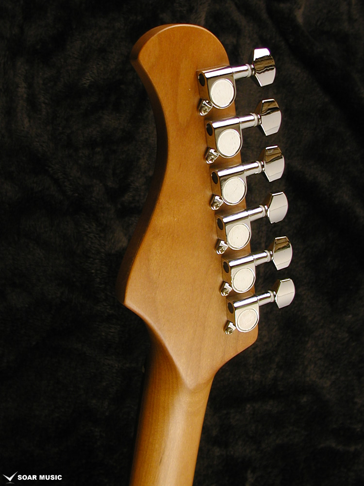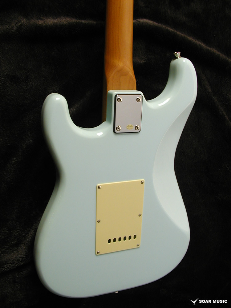 ネックにローステッドメイプルを使用したSSHレイアウトのモデル。 ピックガードやノブにミントカラーのパーツを採用し、オールドギターの風格を漂わせるルックスに仕上げました。 SSHピックアップレイアウトで粒立ちの整ったクリーントーンから、パワーあるオーバードライブサウンドまでジャンルを問わず幅広く音作りをすることができます。更にコイルタップスイッチを搭載し、リアハムはシングルピックアップの様なきらびやかなサウンドを出力します。