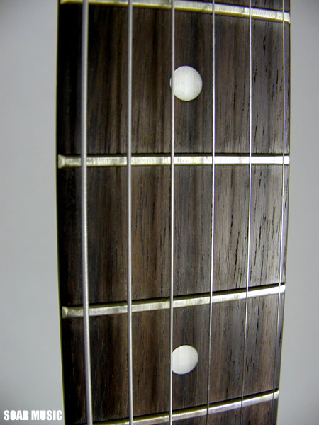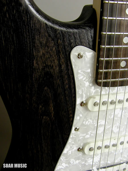 パールピックガードとのコンビネーションで存在感溢れるルックスに仕上がっています。アッシュ材ならではのレスポンスの良さ、音抜けの良さも魅力です。 |