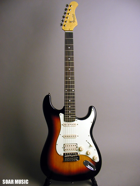 ストラトタイプ BST-350 をベースにピックアップレイアウトをSSH仕様にチェンジ。ストラトタイプ特有の繊細で幅広いサウンドを活かしつつ、ハムバッキングのパワー感も兼ね備えたモデルです。さ重厚でしっかりとした造りで、ネックにはツヤ有りのグロス塗装が施され、ピックガード、 ピックアップカバーもヴィンテージ風で堂々とした存在感があります。