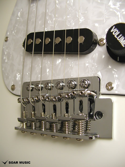 ブリッジにはヴィンテージフィール漂うプレスサドルを使用したシンクロナイズドトレモロを搭載。