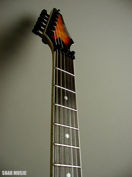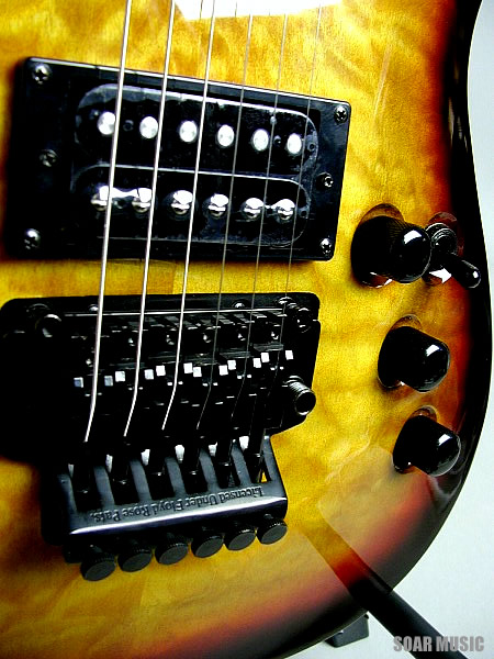 鋭い角度つきのヘッドで、シャープかつ攻撃的な印象がスタイリッシュな BST-480 です。トップはプリントではなく、本物のキルトメイプルで、アーチトップを採用。高級感溢れる独特の木目がボディを美しく彩ります。また、幅広い音域での演奏を可能にする24フレット仕様で、ブリッジにはトリッキーな演奏をサポートするフロイドローズパテントブリッジを装備。フロント/リアピックアップにはハムバッキングを搭載しており、パワー感溢れる重厚なサウンドメイクが可能です。