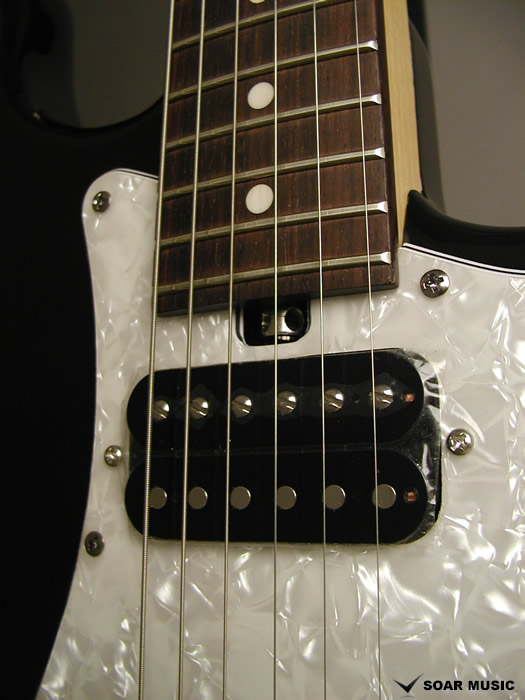 ハム搭載のストラトタイプのギターはハイパワーながらも抜けの悪いモコモコとしたサウンドが多いのですが、こちらのモデルはこもったようなサウンドではなく、パワフルながらもストラトらしい煌びやかさを残し、ハイゲインサウンドでもエッジの立ったザクザクとキレが良いサウンドが特徴です。