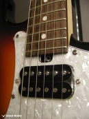 トラディショナルなストラトシェイプはそのままに、フロント・リアピックアップにハムバッキングを搭載した2ハム仕様で、パワフルで図太いハードなサウンドを出力します。