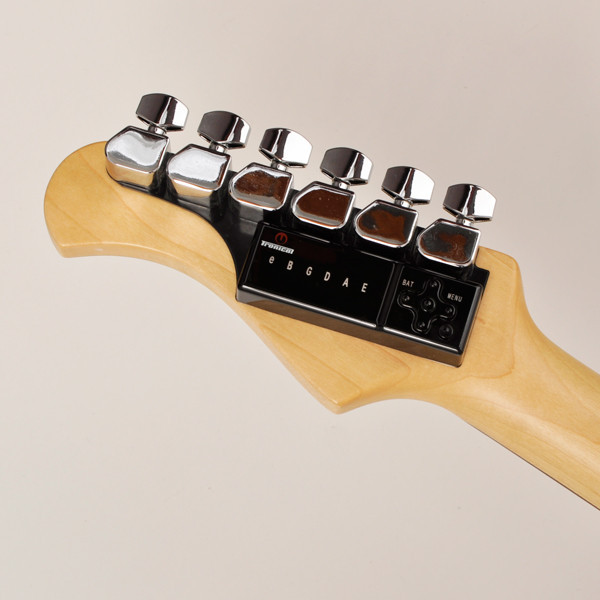 弦を弾くだけで音程を認識し、数秒で各弦をチューニングする「TRONICAL TUNE」を搭載したモデルが完成!レギュラーチューニングの調弦もさることながら、このシステムの真骨頂は変則チューニングへの移行のスムーズさにあります。