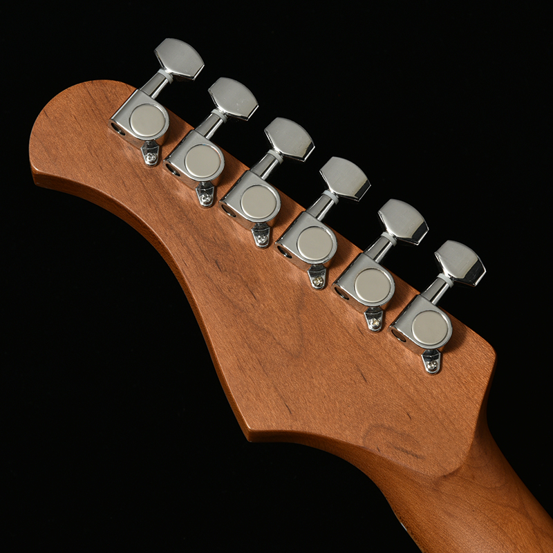 ローステッドメイプルとはメイプルを高温で加熱処理して材の中の水分や油分を揮発させることにより木材を経年変化した状態に人工的に近づけた材のことです。経年変化が進んだ材は歪みやねじれが生じにくくなります。ネックに使用されるとその効果は安定性だけでなくサウンドにも及び、豊かな生鳴りと経年変化したビンテージのようなこなれたトーンを生み出します。一般的に高級機種などで用いられる材ですが、手に取りやすい価格帯に落とし込むことに成功しました。