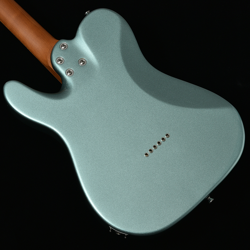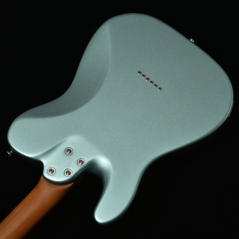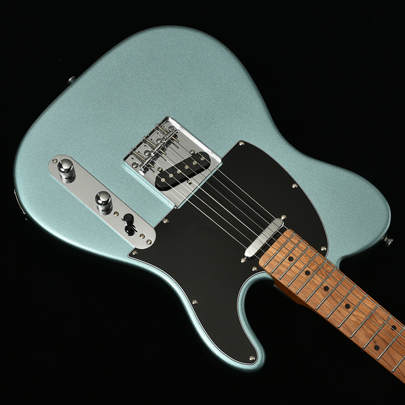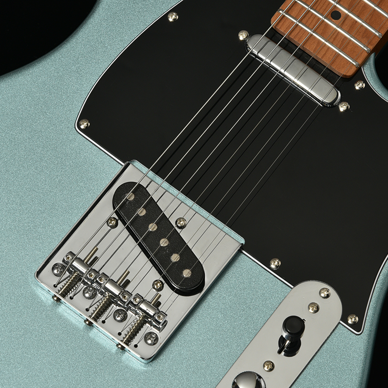 ローステッドメイプルとはメイプルを高温で加熱処理して材の中の水分や油分を揮発させることにより木材を経年変化した状態に人工的に近づけた材のことです。経年変化が進んだ材は歪みやねじれが生じにくくなります。ネックに使用されるとその効果は安定性だけでなくサウンドにも及び、豊かな生鳴りと経年変化したビンテージのようなこなれたトーンを生み出します。一般的に高級機種などで用いられる材ですが、手に取りやすい価格帯に落とし込むことに成功しました。